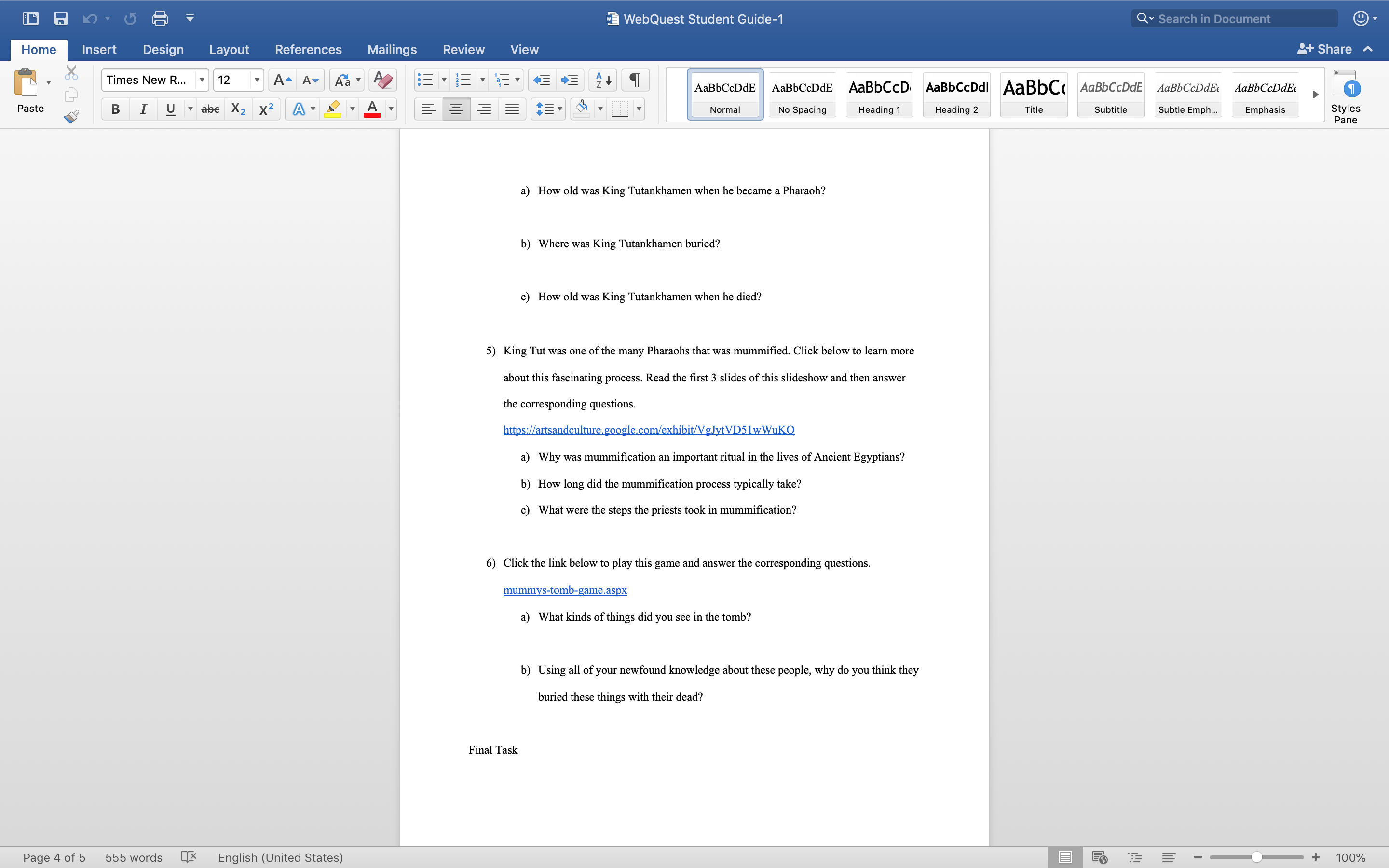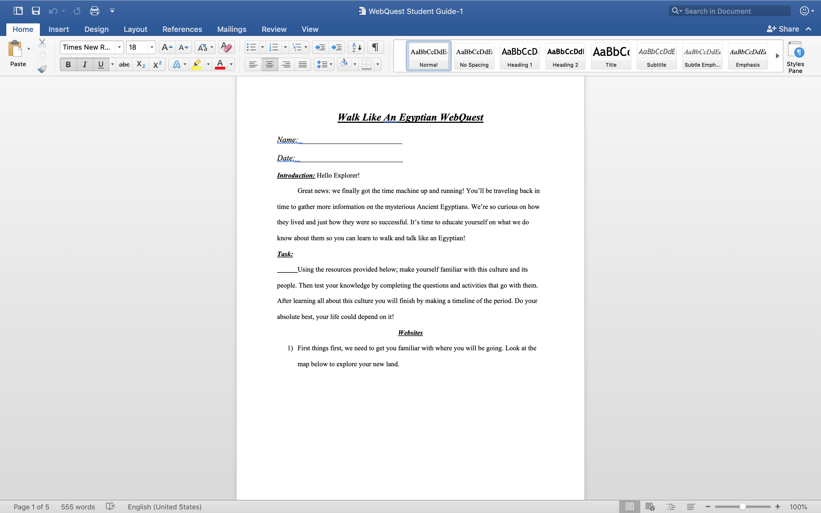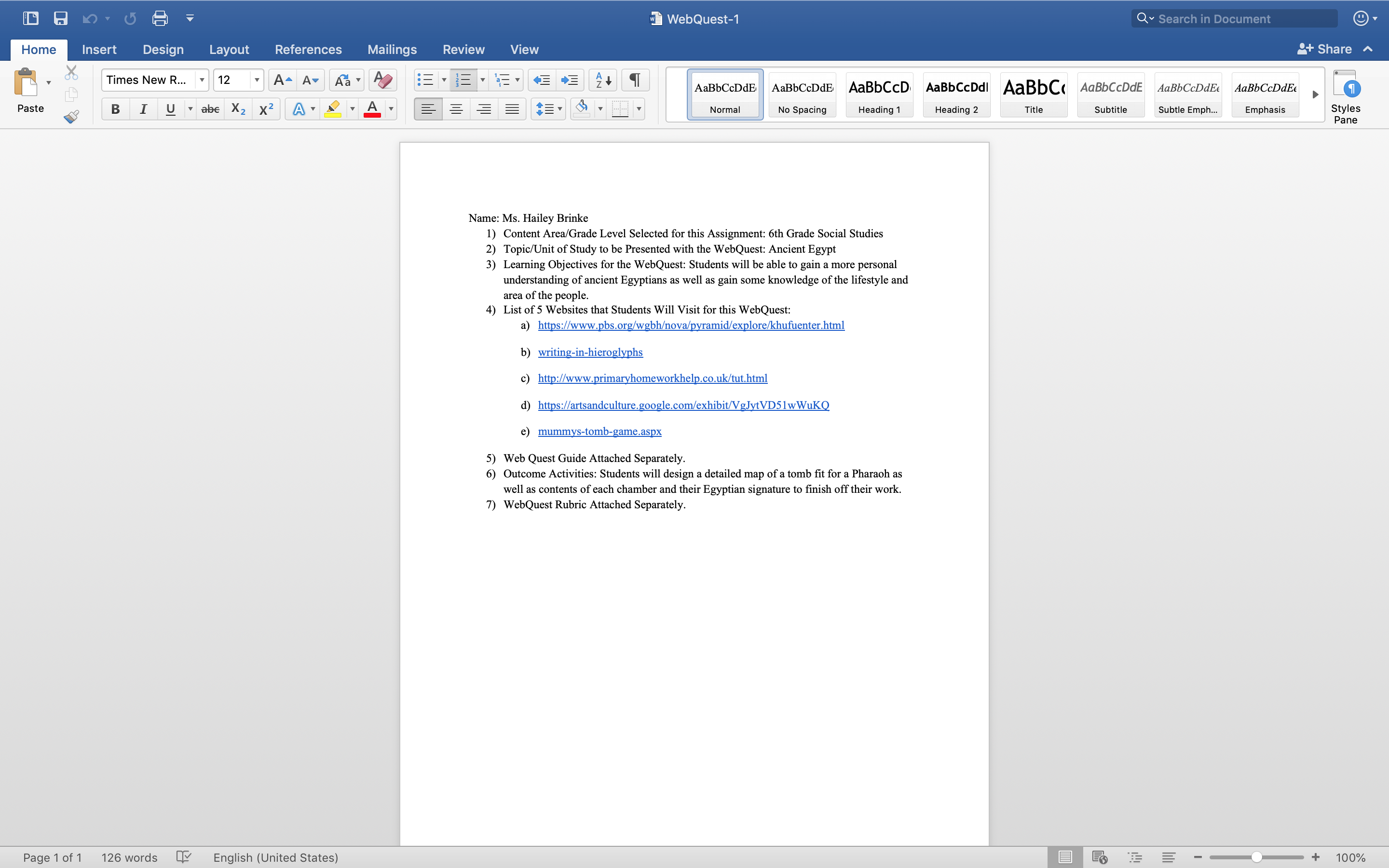 The WebQuest assignment was built to display all that we had learned in this course and create a strong lesson for students, rich in technological resources to strengthen understanding.