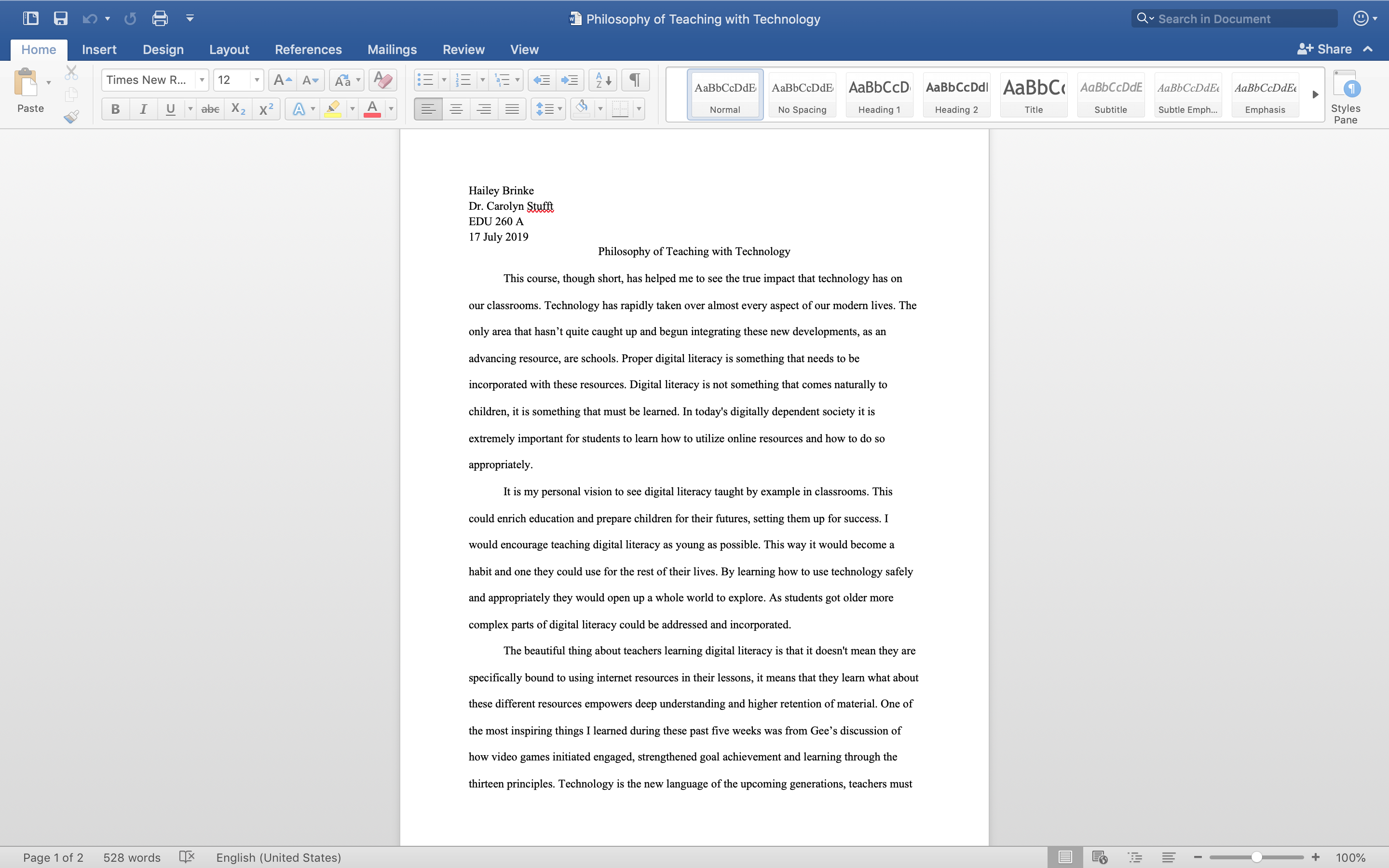 This was an essay which we each personally created discussing what we had learned in this course and how it has shaped our visions for our future classrooms and general education.